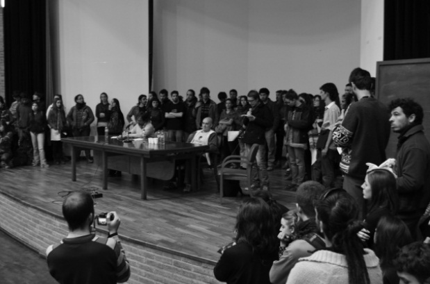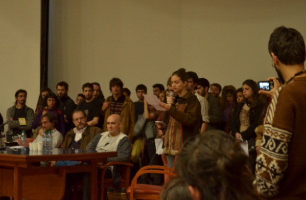 Durante el último día de la X RAM los estudiantes se dirigieron a la conferencia de cierre llevando un cartel que tenía estampada la consigna “descolonizar el saber y el poder”. Fueron recibidos en el escenario por los organizadores del evento y leyeron la declaración de su Asamblea en portugués y castellano. Cientos de copias del documento también fueron distribuidas entre los que participaban de ese acto.
