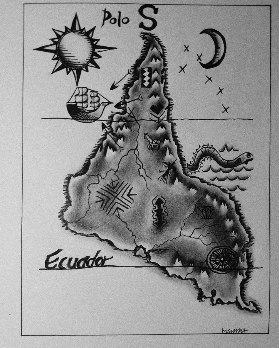 Ilustração: releitura de América Invertida (Torres García, 1943), por Mahara Damin.
