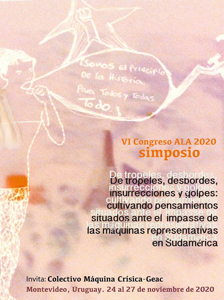 Estimadxs amigxs, lxs invitamos a enviar sus propuestas de intervención al simposio que organiza Máquina Crísica – GEAC en el contexto del VI Congreso de la Asociación Latinoamericana de Antropología, que se celebrará en Montevideo del 24 al 27 de noviembre de 2020. La idea es que este simposio se convierta en una verdadera “reunión de investigación”, ubicada en la intersección entre diversas experiencias de reflexión y militancia que se proponen plasmar una perspectiva situada, afirmativa y creadora ante la actual ofensiva reaccionaria, el ajuste económico y la crisis de las democracias liberales latinoamericanas. Las propuestas deben enviarse hasta el 3 de abril de 2020, siguiendo las instrucciones disponibles en ESTA CIRCULAR.